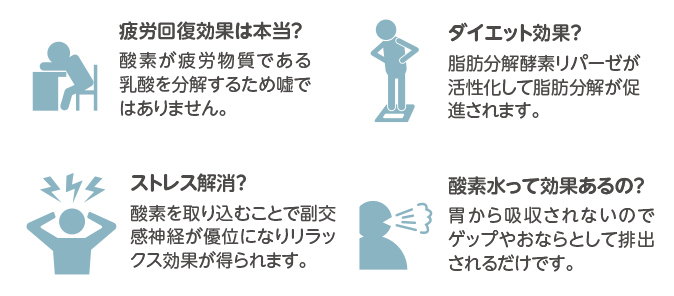 ●効果 血中の溶存酸素量を通常の1.5倍程度に高め疲労回復、冷え症改善