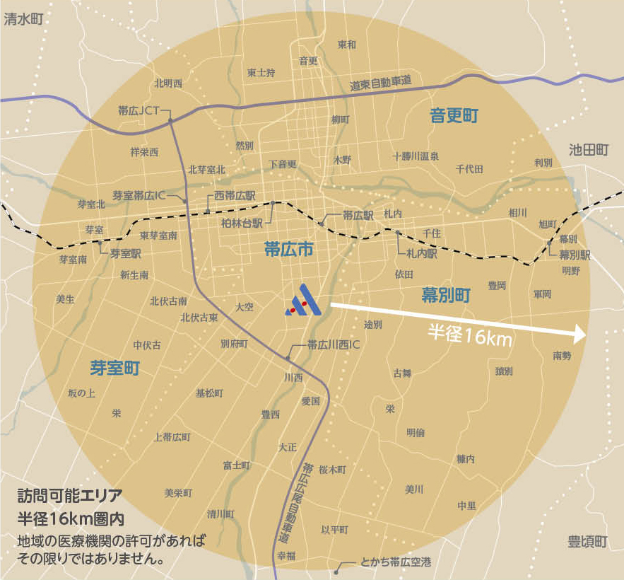 帯広市内をはじめ、近隣の音更町、芽室町