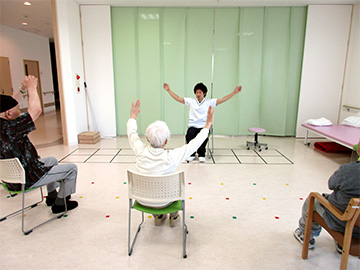 具体的には「水分摂取」「常食摂取」「(立位・歩行)運動」「自然排便」という4つの基本ケアを軸に身体の自立性を図った上で個別のリハビリや活動を促します。これは認知症に対するケアとしても有効です。