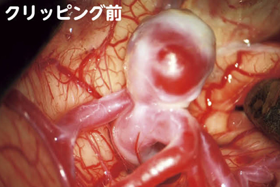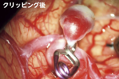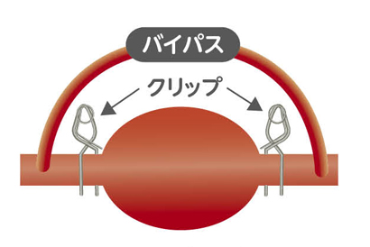 開頭クリッピング術は、動脈瘤の根本をクリップで挟むことにより破裂を防ぐ治療法です。コイル塞栓術と比べ、長い歴史と充分な実績があり、根治性に優れている(再発が少ない)ことが特徴です。開頭手術になるため侵襲が大きい面はありますが、当院では、微細な血管もすべて温存し無血手術を意識することで、脳に負担の少ない安全性が高い手術を可能にし、丁寧な手術を心がけています。早期に社会復帰できるよう、整容面にも配慮しています。また、通常のクリッピング術では対応できないような治療難易度の高い症例においても、バイパスなど血行再建を駆使することにより、より確実で安全な治療を行うよう最善を尽くします。
