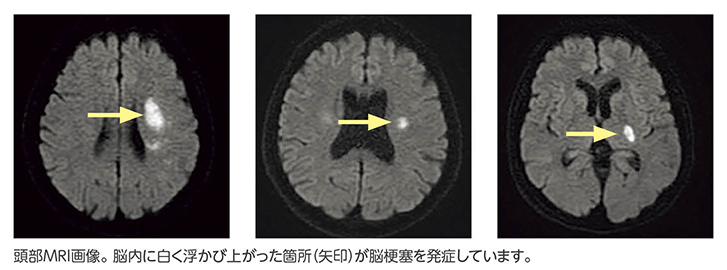 突然の神経脱落症状(片麻痺・失語・構音障害など)を来した場合、頭部の画像検査を実施します。特に発症早期の脳梗塞については、頭部CTよりも頭部MRIでの診断がより正確であるため、当院では頭部MRIを中心に脳梗塞の検査を行っています。MRIで脳梗塞が確認された場合は、前記したの3つの脳梗塞のうち、いずれのパターンに入るのかを頭部や頸部血管、心電図などをもとに判断し、それぞれに応じた再発予防の薬剤を決定します。ただし、脳梗塞は一度起きてしまうと回復しにくい病気であるため、先にも述べましたがまずは発生させないように予防することが非常に重要です。