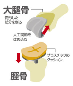 ●人工膝関節置換術 関節の表面を金属製の人工関節に置き換え、プラスチック製のクッションを入れる手術。末期の高齢者が対象