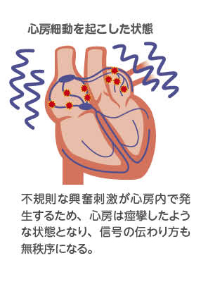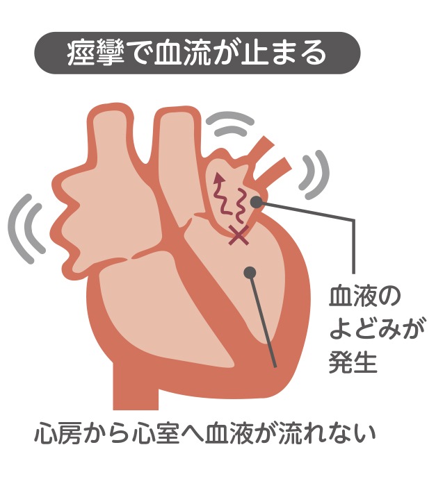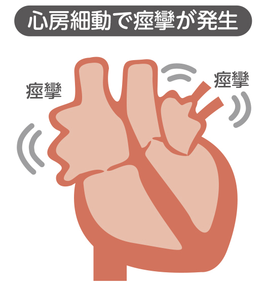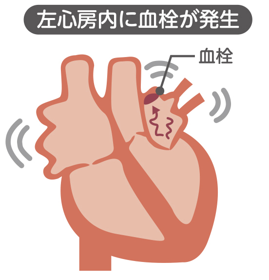 心房細動を放置すると、心臓の機能が低下して心不全や、痙攣が原因で血液がよどみ、心臓内に血栓が発生、「心原性脳塞栓症(脳梗塞)」を引き起こすなど、命にかかわる危険性があります。