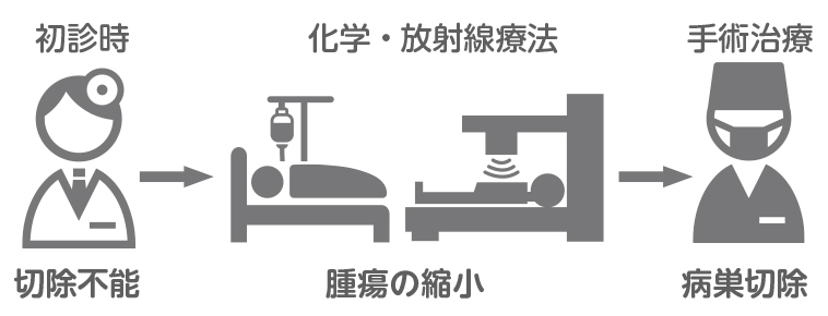 初診時に切除不能と診断され、化学(放射線)療法を施行し、